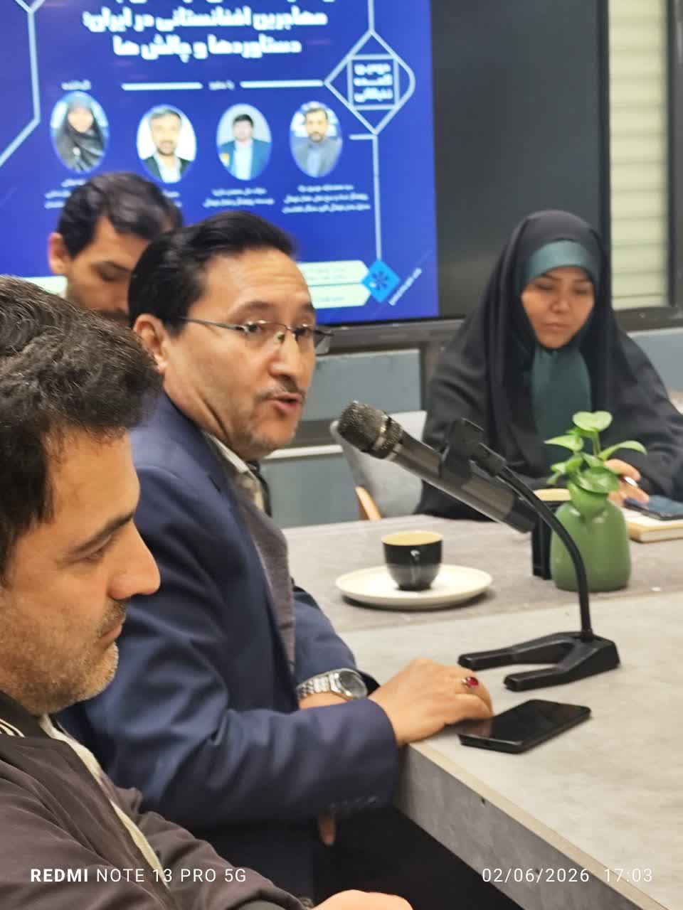 آقای آصف جوادی، نیز به بررسی چالش های موجود بر سر راه فعالیت های فرهنگی جامعه مهاجران افغانستانی پرداختند. ایشان بحران هویت و دوگانگی فرهنگی در جامعه مهاجرین را یکی از مهمترین چالش های موجود ارزیابی کرده و گفتند: «در عالم مهاجرت، هویت بیشتر میان سه قطب در نوسان است: هویت سرزمینی اولیه مهاجر؛ تجربه فرهنگی جامعه مهاجرپذیر؛ فشار جهانیشدن و رسانه. بحران هویت زمانی روی میدهد که این لایههای هویتی با هم ناسازگار شوند. البته بحران هویت همیشه و لزوماً منفی نیست. بحران برابر با لحظه تنش و گذار است، نه فروپاشی. اگر مدیریت نشود سردرگمی، انزوا و گسست فرهنگی میآورد، اما اگر آگاهانه عبور شود، هویت ترکیبی، ملایم و توانمندی را به دنبال دارد. بحران هویت میتواند فرصت بازسازی هویت باشد، نه تهدید».