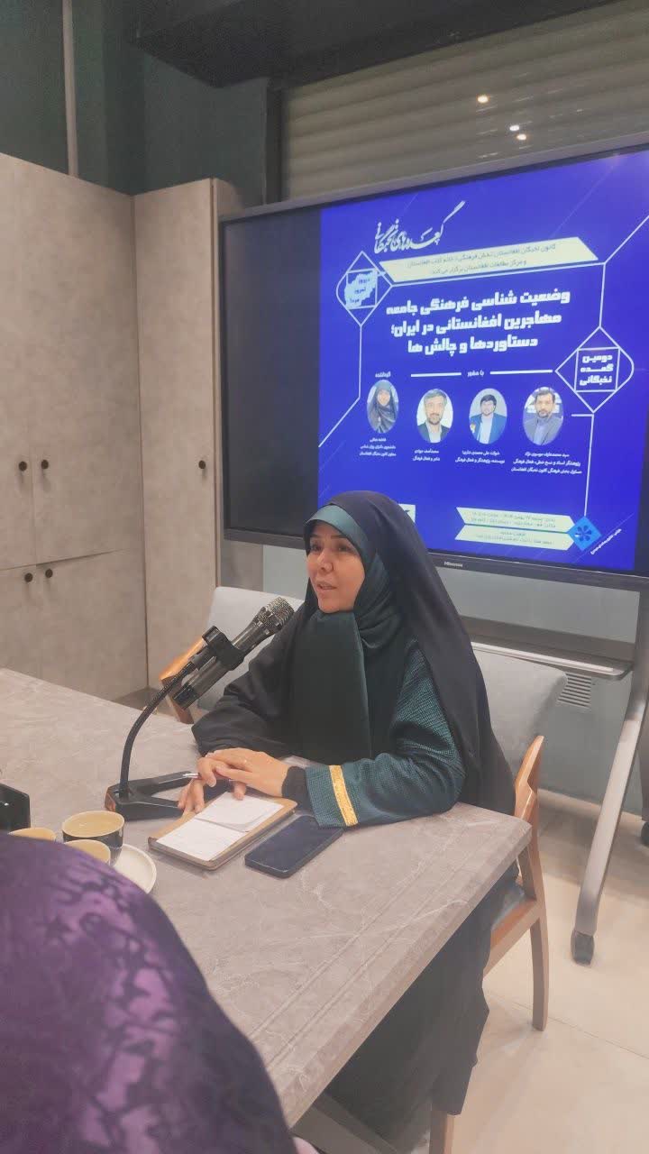 در ابتدا خانم فاطمه عطایی، دانشجوی دکتری روان شناسی و معاون کانون نخبگان افغانستان، به عنوان گرداننده برنامه؛ در مورد ضرورت و اهمیت توجه به مباحث فرهنگی مهاجرین افغانستانی نکاتی را بیان کرد.